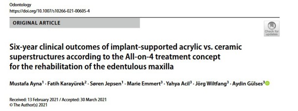 „Six-year clinical outcomes of implant-supported acrylic vs. ceramic suprastructures according to the All-on-4 treatment concept for the rehabilitation of the edentulous