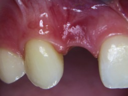 Beispielhaft eine Patientin mit einem abgebrochenen Frontzahn und die Versorgung mit einem Sofortimplantat und einem Keramikzahn.